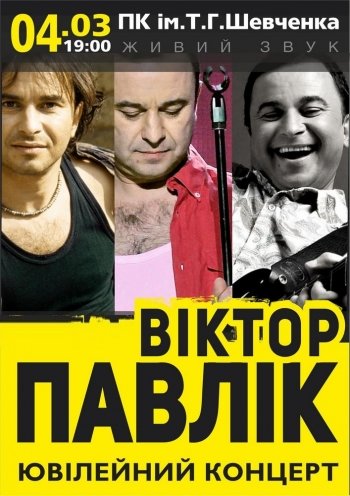 Харизма України, улюбленець українських жінок, Віктор Павлік приїде в Мелітополь з ювілейною концертною програмою". 4 березня о 19:00 на сцені ПК ім. Т.Г.Шевченка прозвучать тільки хіти, 20 обожнюваних Україною пісень від головного романтика країни. Це буде справжня симфонія музики, улюбленого голосу і віртуозної гри кращих музикантів. Гостей чекають музикальні сюрпризи і найромантичніший весняний день 2018-го. Якщо Ви хочете зробити пропозицію своїй другій половинці, сказати головні слова, на які раніше не наважувались, цей концерт для Вас. Адже кожна пісня цього артиста, це освідчення в коханні "Я вдячний Богу. Я вдячний людям. Свято коли ти поруч з найріднішими людьми", говорить Віктор Павлік.