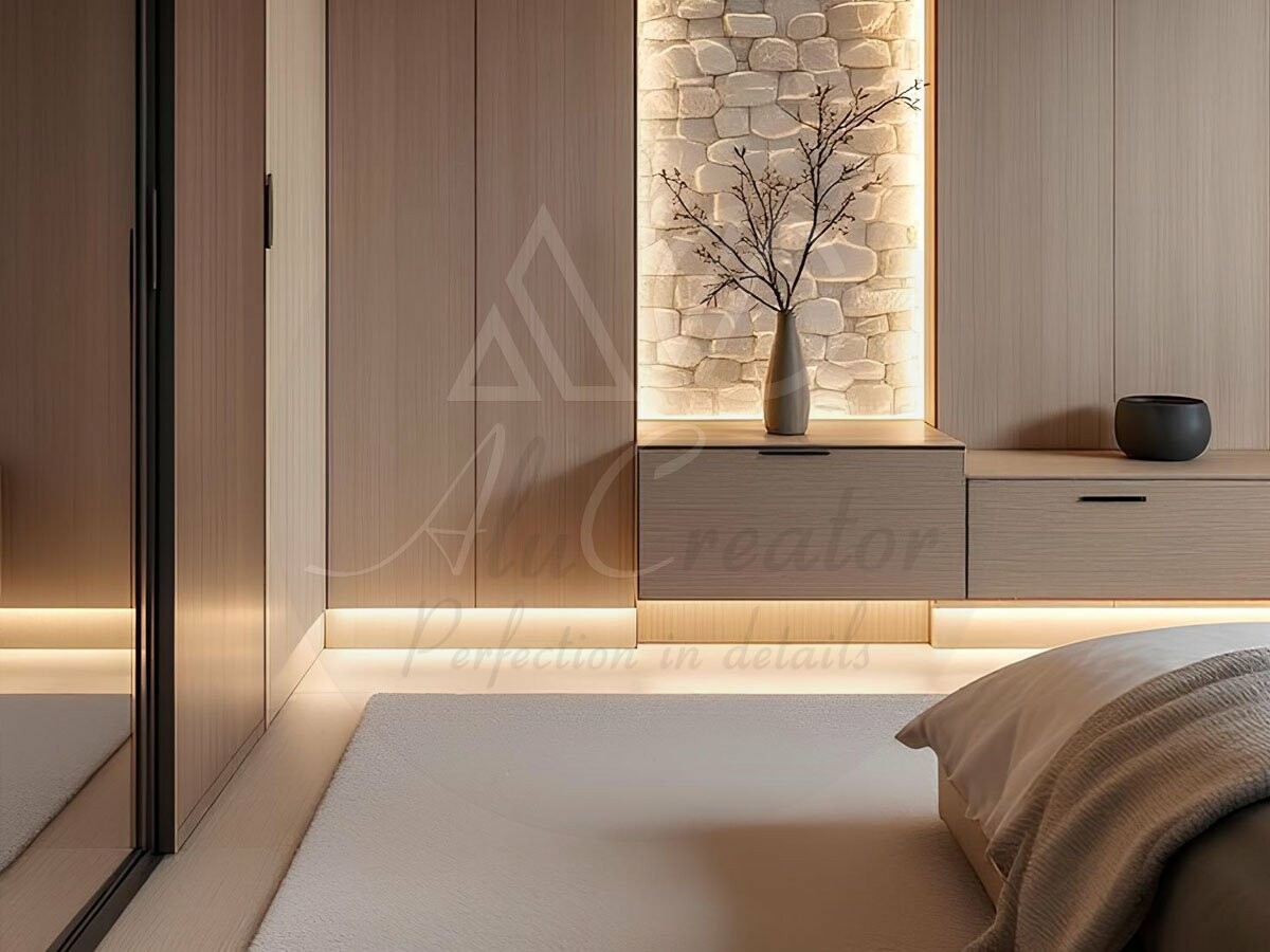 Интересное применение находят алюминиевые профили с LED подсветкой в гардеробных и системах хранения. Установленные на уровне пола или на полках, они обеспечивают функциональную подсветку, помогающую найти нужную вещь, и создают эффект дорогой встроенной мебели даже в типовых шкафах.