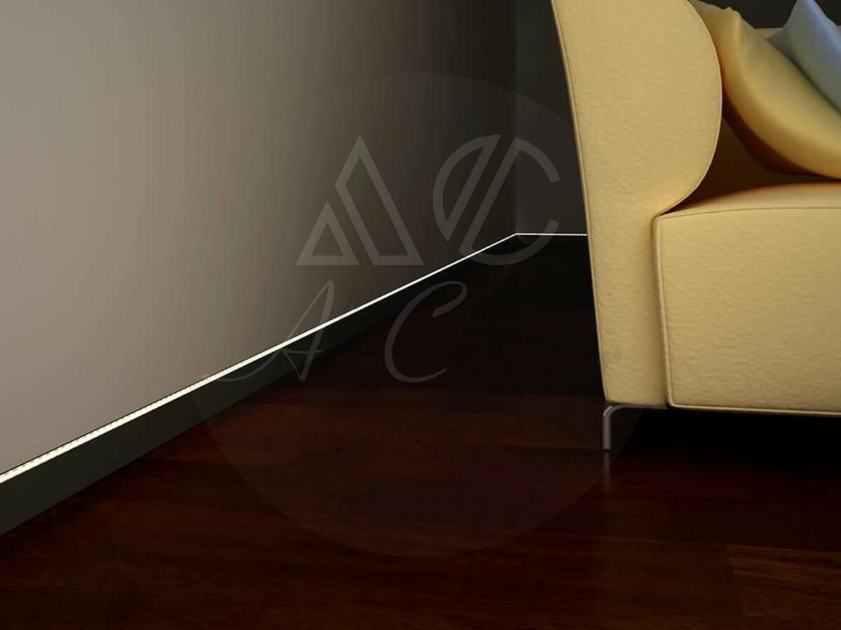 Разнообразие форм профилей впечатляет – от минималистичных узких моделей до более выразительных широких вариантов, от лаконичных прямоугольных сечений до сложных многоуровневых конструкций. А возможность покраски алюминиевого профиля в любой цвет по каталогу RAL позволяет идеально интегрировать светодиодный плинтус в любую цветовую концепцию интерьера.