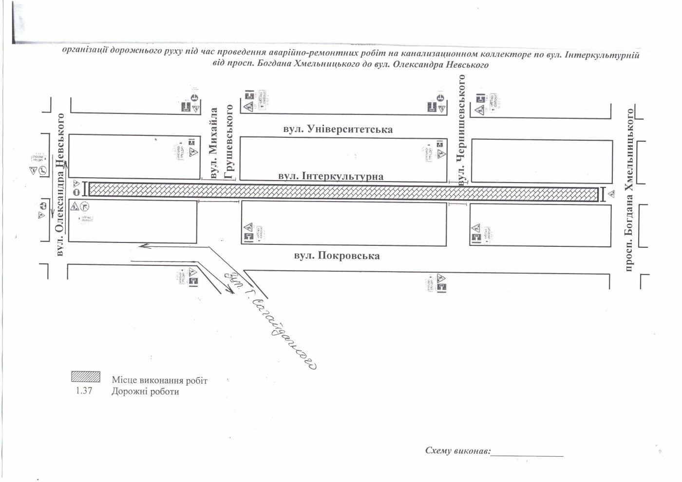 Сьогодні, 17 лютого, з 9.00 год у зв’язку з проведенням робіт із заміни водопровідних мереж по вул. Михайла Грушевського орієнтовно на два тижні буде перекрито рух транспорту на двох ділянках: від вул. Покровської до вул. Інтеркультурної; від вул. Інтеркультурної до вул. Університетської.