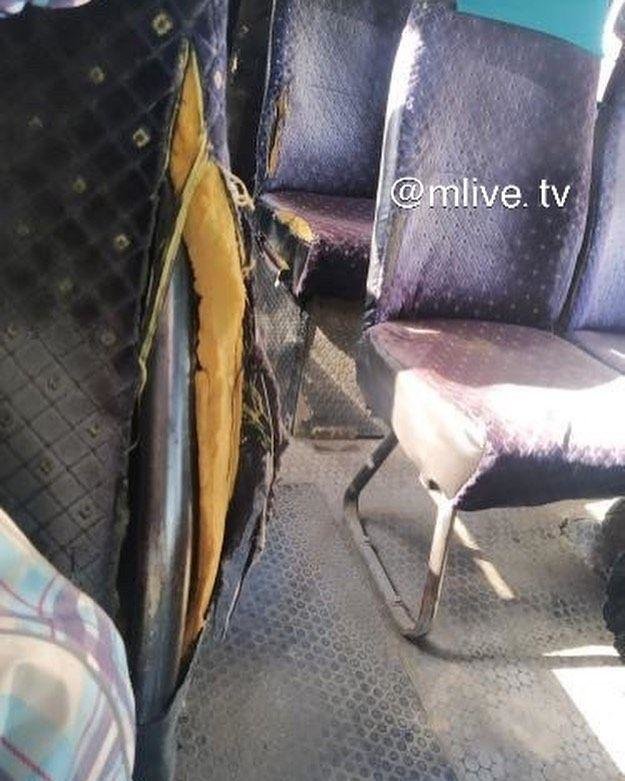 У соц.мережі виклали фото обдертого салону маршрутки. Людям доводитися сидіти на зламаних сидіннях з розірваною оббивкою.