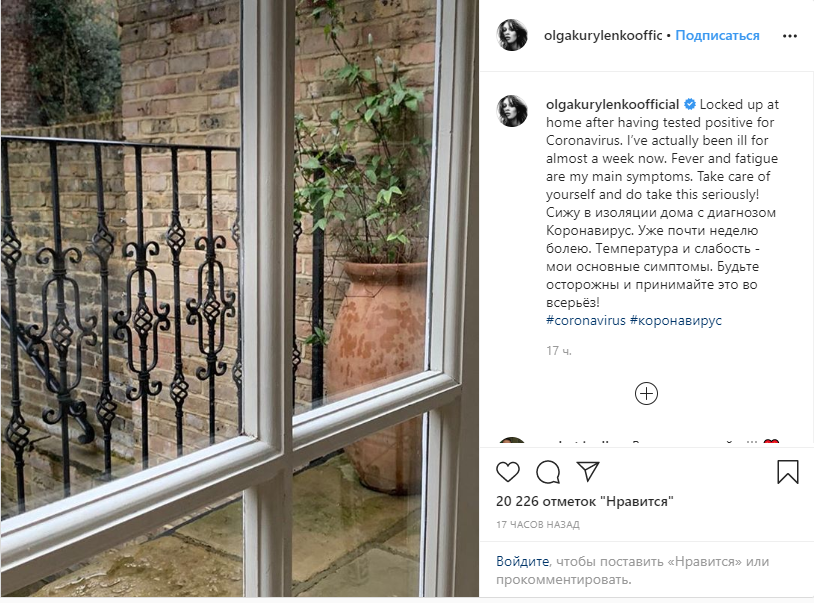 Відома голлівудська акторка з українським походженням Ольга Куриленко, повідомила на своїй сторінці в інстаграм, про зараження на коронавірус.