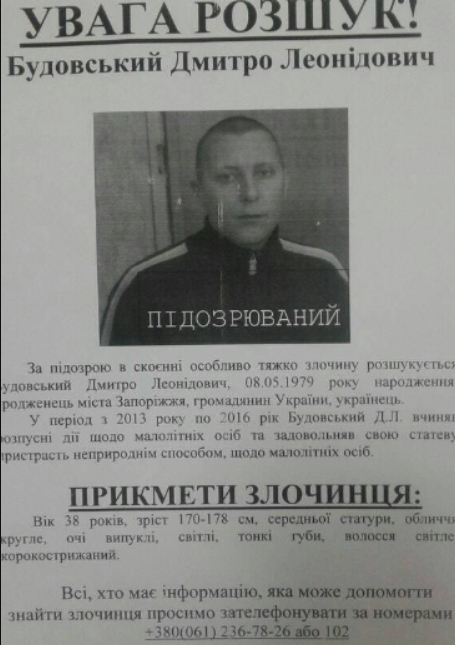 Якщо ви володієте будь-якою інформацією про місцеперебування педофіла, повідомте за телефоном: 061 2367826 або 102.