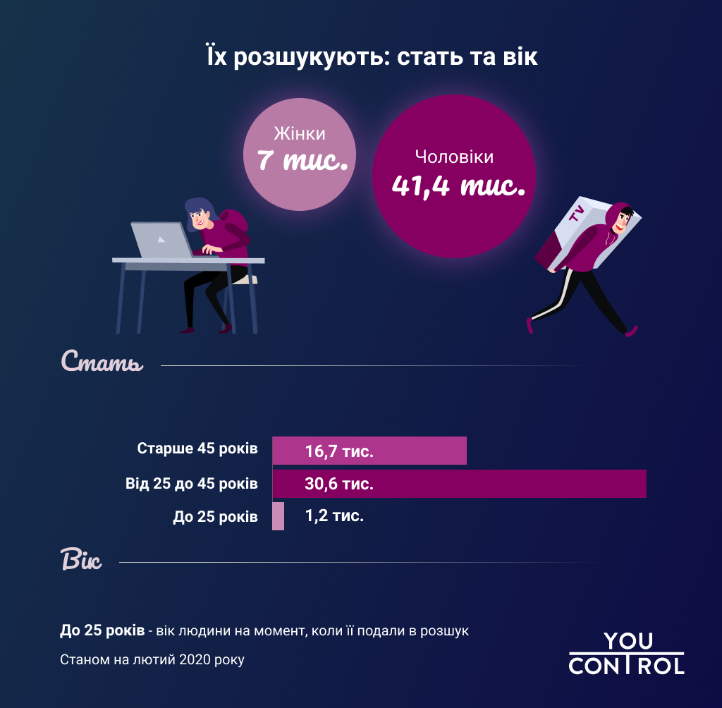 Здебільшого розшукують людей середніх років. Але є і виключення. Так у базі даних перебуває 44 особи за 80 років, а найстаршому чоловіку – 93 роки.