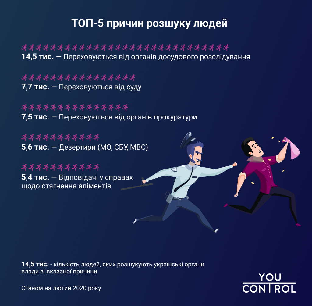 Серед популярніших причин розшуку – переховування від поліції (30%) та переховування від суду та прокуратури (15%).